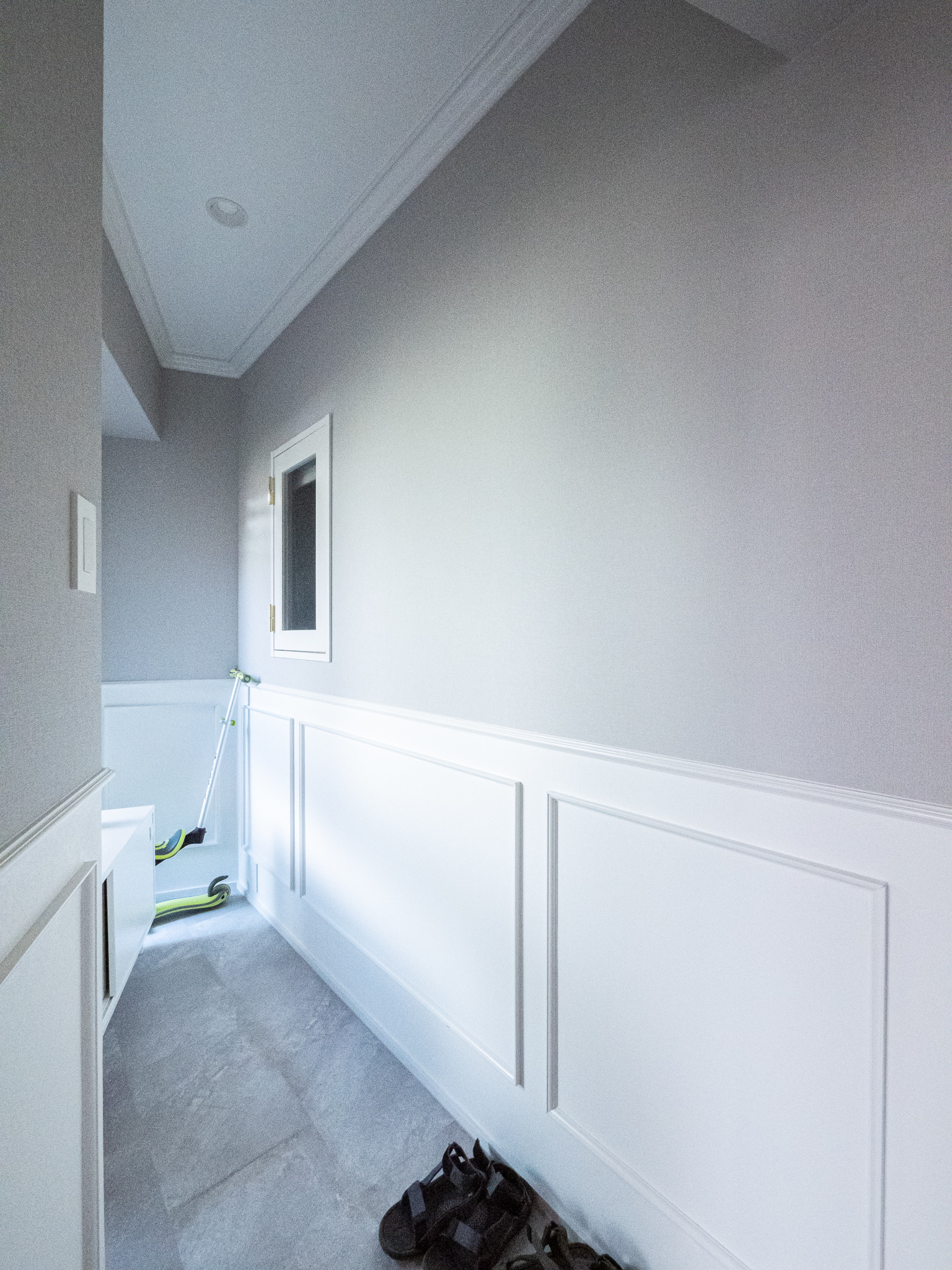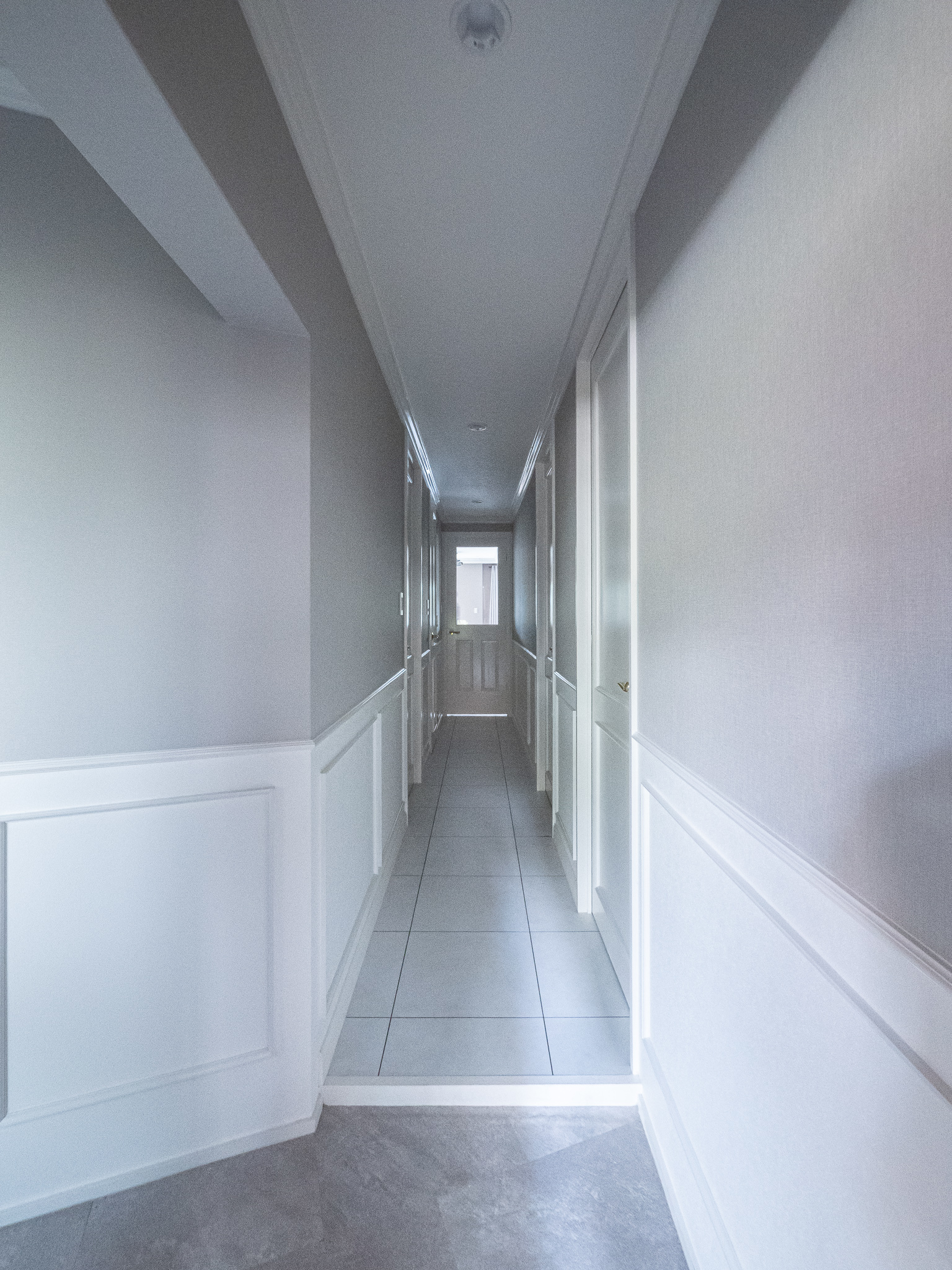 廊下は建具までモールディングで全面に装飾を施しクラシックに。