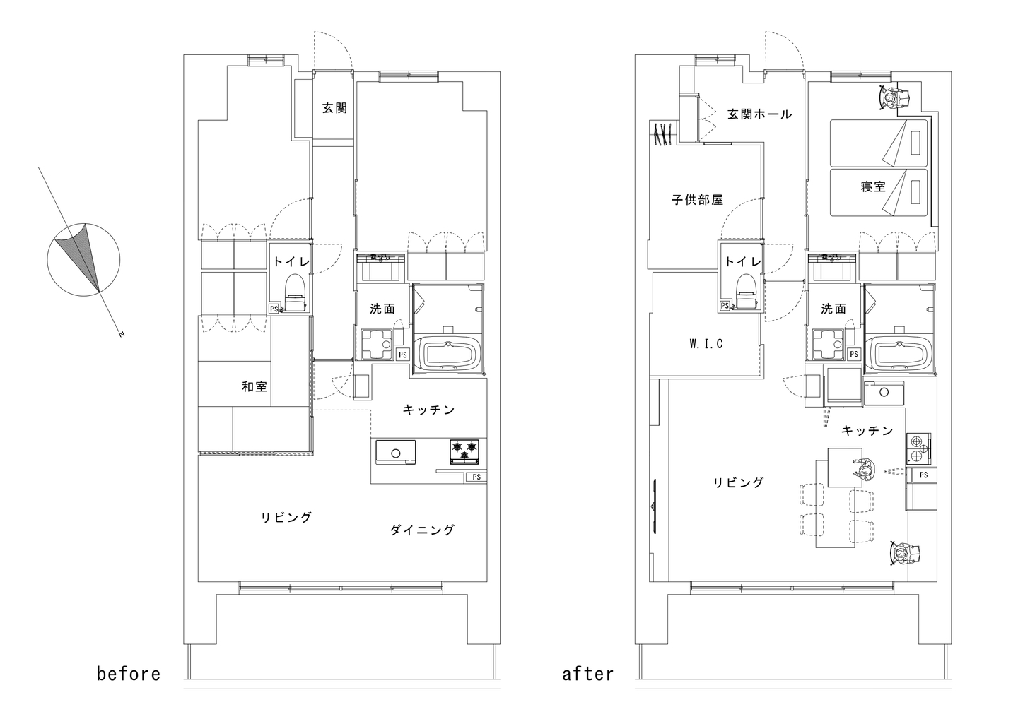 既存の間取りをいかしたところも多く、コストも抑えたリノベーション。